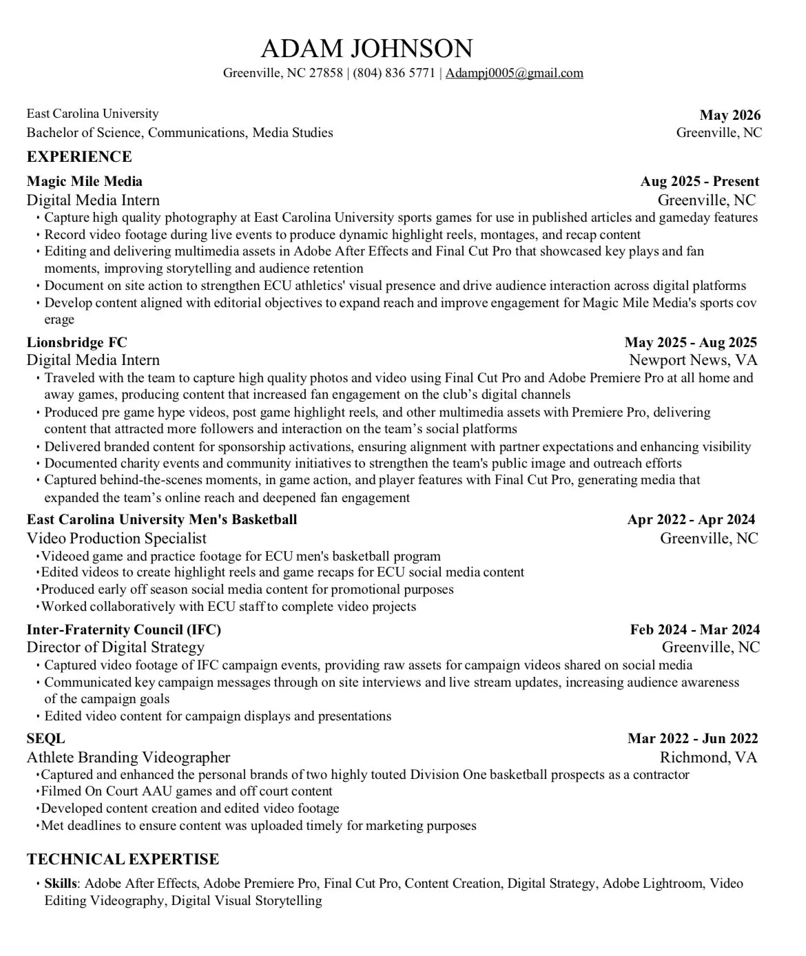 Adam Johnson Videography Work